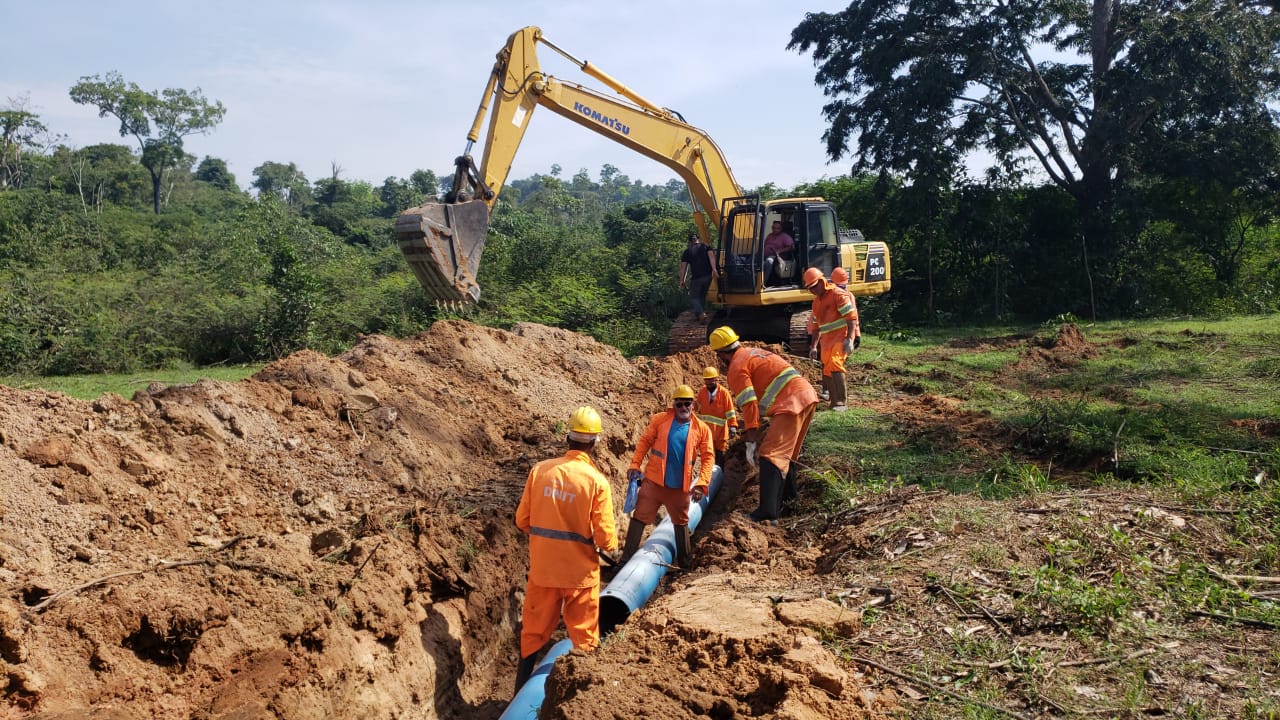 A equipe de engenharia da concessionária Águas de Novo Progresso, deu início na última quinta-feira (01.09), nas obras de duplicação da adutora de água bruta – tubulação de grande diâmetro que vai transportar água bruta captada do Rio Jamanxim até a Estação de Tratamento de Água – ETA Novo Progresso.
